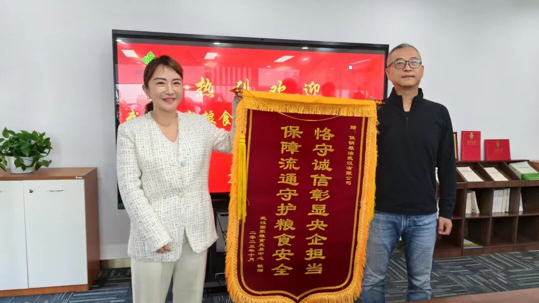 吴萍主任代表武汉国家粮食交易中心,对武汉公司在前期合作中展现的高效履约能力给予高度认可,并现场赠送锦旗与感谢信。吴萍表示武汉公司恪守“交易规范、守约楷模”的准则,在行业内树立了诚信经营的金字招牌。随后,吴萍介绍了交易中心的发展历程与核心服务职能并表达了深化双方合作的意愿。会上,双方围绕基差交易试点推进、贸易粮专区共建、供应链金融服务落地等多项合作事宜深入探讨,最终达成共识。